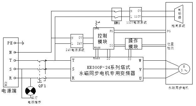 采用编码器做有PG矢量闭环控制,同时通过编码器记录上、下限位置之间脉冲数及圈数,再通过永磁同步变频器程序自动控制冲程和冲次。