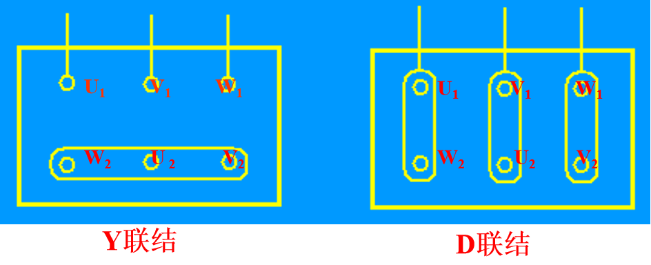 对中、小容量的低压异步电动机,通常定子三相绕组的六个出线头都引出,这样可根据需要灵活地接成“Y”形或“D”形。
