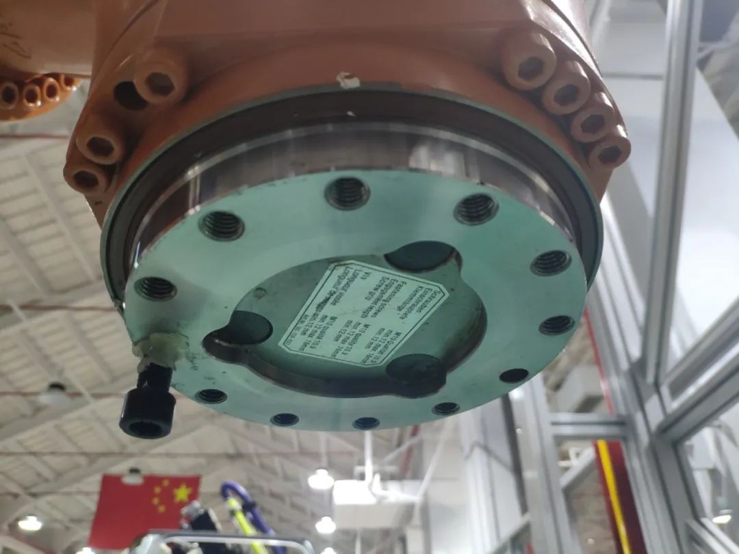 六轴工业机器人的TCP(Tool Center Point,工具中心点)默认在第六轴法兰末端,需要先将其修改到引导设备的末端,即修改到螺栓的末端,如下图: