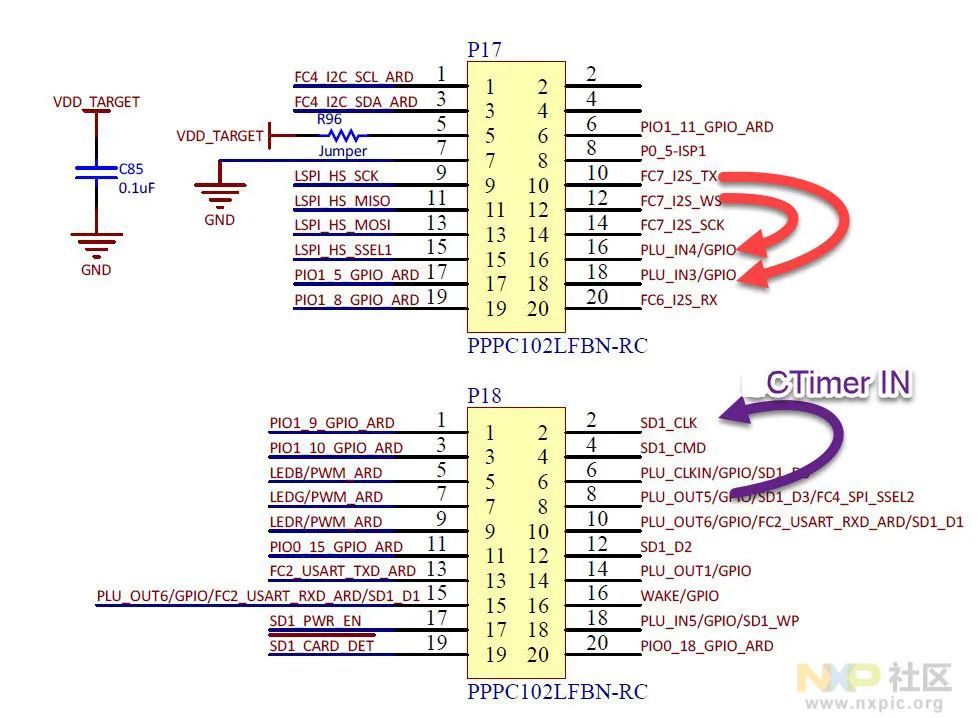 以LPC55S69-EVK开发板为例,具体的引脚使用如下: