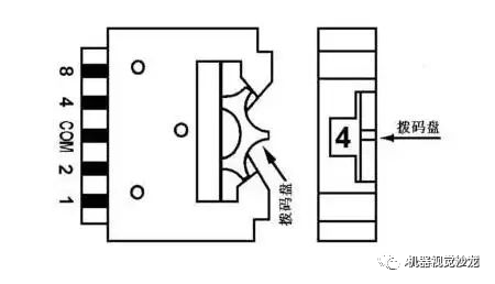 如图所示,4位拨码开关组装在一起,把各位拨码开关的COM端连在一起,接在PLC输入侧的COM端子上。每位拨码开关的4条数据线按一定顺序接在PLC的4个输入点上。由图可见,使用拨码开关要占用许多PLC 输入点,所以不是十分必要的场合,一般不要采用这种方法。