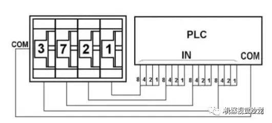 式中:I为传感器的漏电流(mA),UOFF为PLC输入电压低电平的上限值(V),RC为PLC的输入阻抗(KΩ),RC的值根据输入点不同有差异。4、PLC与多位拨码开关的连接