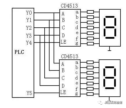 PLC可直接用开关量输出与七段LED显示器的连接,但如果PLC控制的是多位LED七段显示器,所需的输出点是很多的。