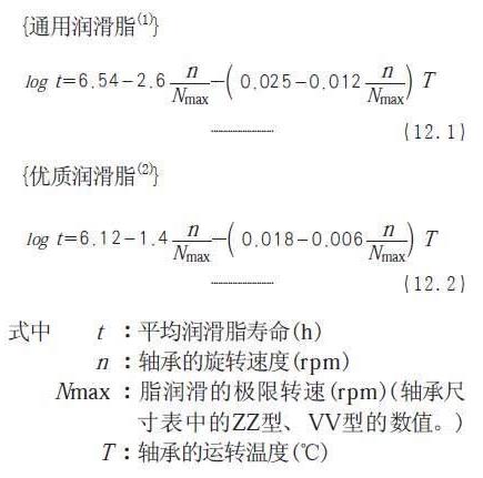 寿命二:平均润滑脂寿命L50(考核润滑脂多久会干涸掉),每个轴承厂家的计算公式还都不一样,下面以NSK样本书给出的计算公式说明: