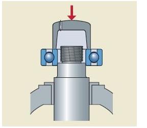 是的,你没看错,就是这么残酷的现实,如果轴承的内外圈相对受力,只需轻轻一压,轴承就容易在钢球表面和滚道面产生损伤压痕(专业名字叫布氏压痕),进而产生异音。所以,任何可能使轴承内外圈相对受力的安装姿势,都可能使轴承内部产生损伤。