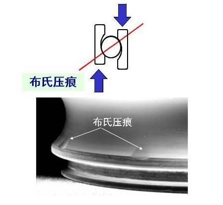 但,如果不是这样,而是让内外圈相对受力了呢?那就会如下面这样的图示,产生了布氏压痕。