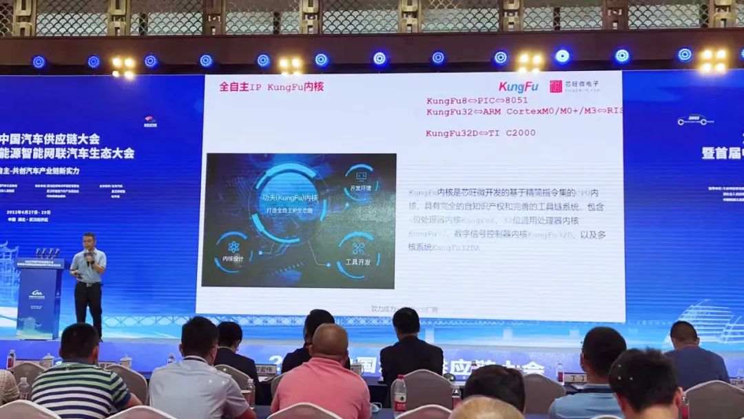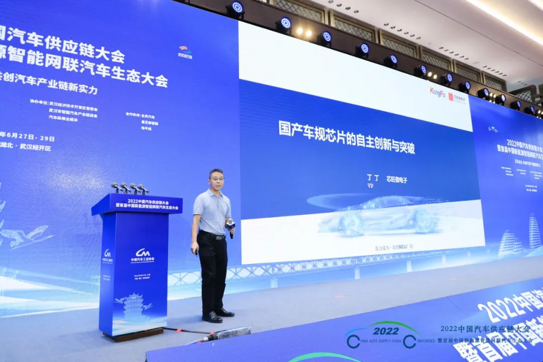 论坛,芯旺微电子副总裁丁丁总受邀出席活动现场,并发表《国产车规芯片的自主创新与突破》主题演讲。