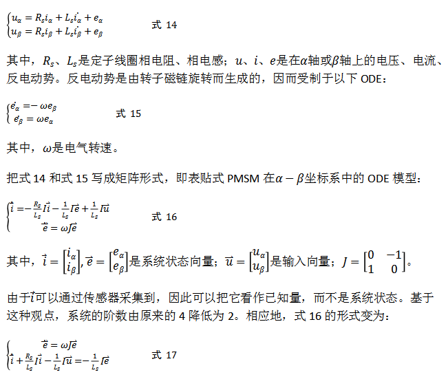 在静止两相坐标系(α-β坐标系)中,表贴式PMSM的电压方程为: