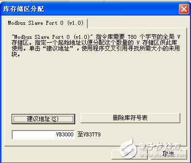 2,设置库存储区。点击菜单栏中的“文件”在下拉框中选择“库存储区分配”在打开的对话框中输入库存储区的起始地址,注意避免该地址和程序中已经采用或准备采用的其它地址重合,可以点击“建议地址”避免modbus功能块所占用的地址和程序中的寄存器地址重叠。