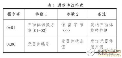将元器件三面体上的元件信号通过数据线引至控制板,并实现与上位机的通信。为避免旋转过程中数据线出现缠绕,选取某个操作面为基准操作面,其他两个面采用往复双向旋转复位方式运行工作。