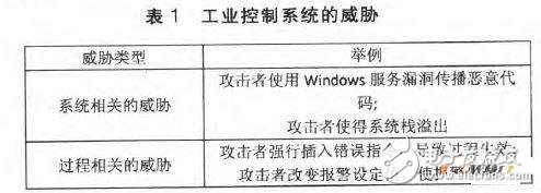 工业控制系统面临的威胁可以分为两种:系统相关的威胁和过程相关的威胁。典型的系统相关威胁和过程相关威胁如表1所示。