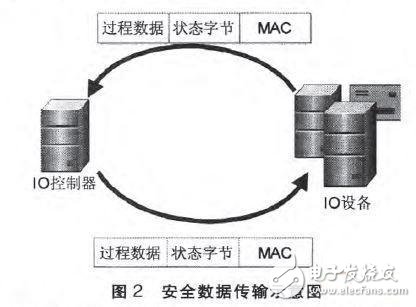 文献借鉴功能安全的概念,提出了一种在通信系统之上增加信息安全模块的方法。控制系统的功能安全在传输系统的基础上增加功能安全层,无需改变底层传输系统,即可实现系统的故障安全。类似地,文献设计一种信息安全模块,用于保护端到端通信的认证、完整性和保密性。所谓的安全模块不是指简单的物理模块,而是与PROFINET IO中的设备模型相对应,是一个软件实现。如图2所示,安全模块从应用层中获取过程数据,通过加密算法加密过程数据,利用MD5算法计算消息完整性编码,状态字节用于表示消息完整性和超时。安全模块通过参数化,可以适应不同的安全需求和不同的计算能力。消息完整性编码可以防止中间人攻击,例如,攻击者截取发送的消息并篡改过程数据,由于没有密钥,无法计算出准确的消息完整性编码,接受者在接收到消息后对MAC进行验证,如果无法验证其正确性,则会修改状态字节,用以汇报受攻击状态。