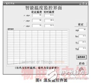 MSComm1.PortOpen= True//打开通信端口。计算机端的VB程序利用MSComm 控件与S7-200交换数据,通过自由口通讯程序从现场采集温度信号。并且上位机程序可以设定初始温度和PID参数、显示动态温度曲线。程序运行界面如图4所示。
