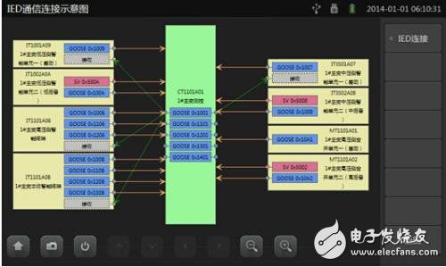 “SCL分析”功能可以分析SCL文件中各IED的SV、GOOSE发送接收配置,可选择某一IED,图形化显示各IED间的连接关系,并可查看该IED中SV、GOOSE发送接收的控制块的详细配置(包括控制块基本参数,通道列表,以及各通道与其他IED的虚端子连接等信息),如图3所示。