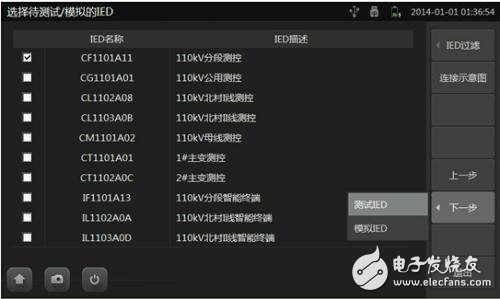 “IED速配”,是一个能根据SCL文件中的IED通信配置,快速完成DT6000系列测试仪的SV、GOOSE发送接收配置的向导。如图4所示,可选择SCL文件中的某一个IED,根据测试或模拟IED的需求快速地完成不同的配置。