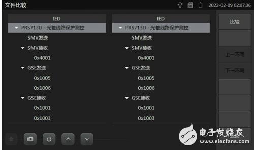 如图5所示,“SCL对比”功能可以分析两个SCD文件的差异,以树形列表方式直观的显示与统计SCD差异内容:IED差异、控制块参数差异、通道定义差异、虚端子映射差异等,方便用户及时了解SCD配置更新情况。