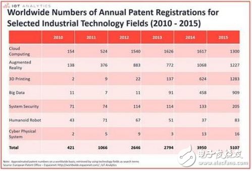 IoTAnalytics分析了世界范围内从2010-2015年申请的相关专利数,专利数可以看做是创新活动的一个重要指标。