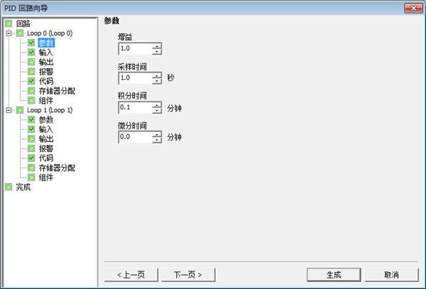 点击工具——PID即可开始PID的向导配置,这里组态了两组PID回路,LOOP 0和LOOP 1