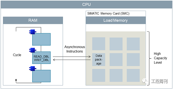 比如,下图中异步指令 "READ_DBL"和 "WRIT_DBL" 访问装载存储区 (SMC)。存储卡SMC已达到自己的存储极限,这会增加断电时对于数据一致性保护的管理负荷,导致对存储卡读写性能的损失,然后引起循环周期增加。