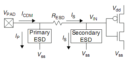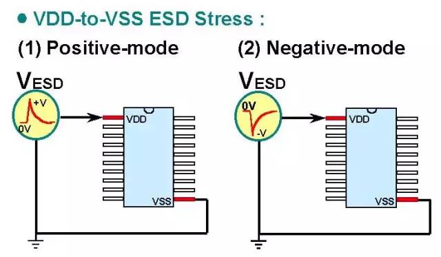 1. I/O pins:就是分别对input-pin和output-pin做ESD测试,而且电荷有正负之分,所以有四种组合:input+正电荷、input+负电荷、output+正电荷、output+负电荷。测试input时候,则output和其他pin全部浮接(floating),反之亦然。