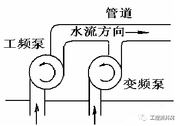 某用户用一台西门子MM440系列22KW变频器来控制纺织车间集中供热换热系统(如图所示),在停机加泵时总是出现F001过流故障。