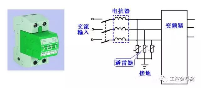 在电网上,已经安装了多级避雷器,但前级雷电的残存电压或变频器附近的雷电感应电压仍然会对变频器造成破坏。