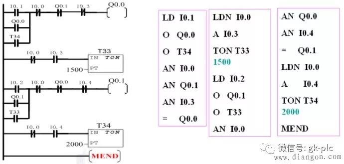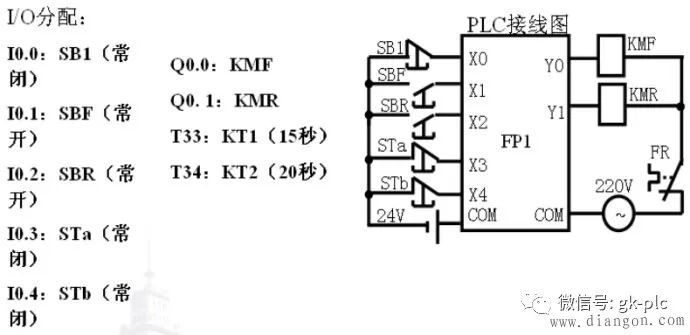 在电气原理图转化为梯形图的过程中,真正实现了一一对应的关系,I0.0代表输入,所接的就是电气原理图里面的启动开关,停车开关,热保护继电器,Q4.0代表输出,所接的是控制电机正反转的交流接触器(CJ),其实在转化完之后的电路中,真实的电机只连接了热保护继电器和交流接触器,需要人操作的按钮全都接到了plc的输入端。