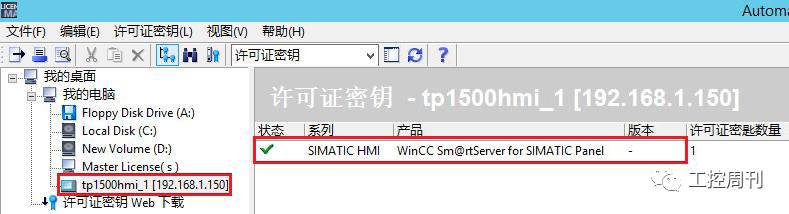 在打开的界面中设置正确的连接参数。如果连接设置无误,那么在授权管理器中就可以看到需要传送授权的设备。右击选中Sm@rtServer授权,在弹出的菜单中选择传送目标为面板。然后在授权管理其中就可以看到面板中的授权信息。