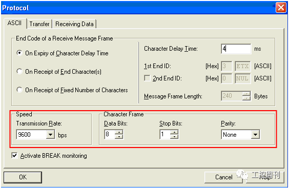 对于从站CP341/CP340模块的参数分配与主站保持一致,特别注意波特率、数据位、停止位和奇偶校验位设置要与主站相同。