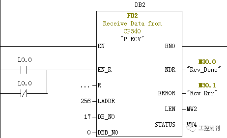 从站一直启动接收功能FB2 P_RCV,接收来自网络上的数据,如果接收到数据则根据地址标识符判断是否是本站的数据: