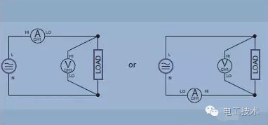 图9.三角形接法,采用“分相”或“中心分接”线圈 功率测量 在交流系统中,功率使用功率表测量。现代数字采样功率表,把多个电压和电流的瞬时样点乘在一起,计算瞬时功率,然后取一个周期中瞬时功率的平均值,表示有功功率。功率表将在广泛的波形、频率和功率因数范围上,准确测量有功功率、视在功率、无功负载、功率因数、谐波等等。为使功率分析仪提供良好的结果,必须能够正确识别布线配置,正确连接功率分析仪。 单相功率表连接 只要求一个功率表,如图10所示。系统与功率表电压端子和电流端子的连接简单明了。功率表的电压端子透过负载并连,电流通过与负载串联的电流端子输入。
