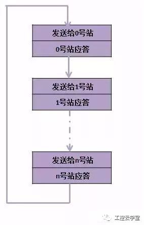 通常USS有一个主站和若干个从站,也就是一台PLC控制若干台变频器,轮询的过程中,首先变频器的从站地址会被分别赋予不同的值,从0到n,中间可以不连续,轮询的过程是PLC发送数据给0号站,0号站应答,接下来又发送给1号站,1号站再应答,一直到发送给n号站,n号站应答。对于某一个特定的站点,如果PLC发送完数据以后,接不到该站点的应答,则再发送一包数据,如果仍然接收不到,则放弃该站,开始对下一站号进行发送。