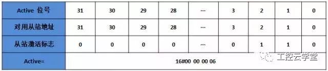 首先Active这个变量的数据类型是一个双整型,也就是32位,在这里我们把32位由低到高逐次地列举出来,那么它所对应的从站的地址0号位对应的就是0号站地址,1号位对应就是1号站的站地址,以此类推,非常好识别。从站激活的标志只有0和1两个状态,0表示未激活,1表示激活,那么在表格第三行的例子中表达的是1、2号位被激活,其它的所有位都是0,没有被激活,那么这个时候实际上Active=16#00 00 00 06,这个数表达的是1号站和2号站将被激活,所以USS轮询从站的时候轮询的就是1号站和2号站。