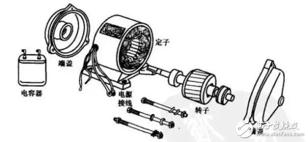 电动机主要包括一个用以产生磁场的电磁铁绕组或分布的定子绕组和一个旋转电枢或转子和其它附件组成。在定子绕组旋转磁场的作用下,其在电枢鼠笼式铝框中有电流通过并受磁场的作用而使其转动。