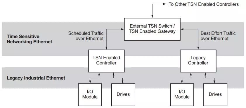IIoT 时代的连接朝着精简方法发展,但这一转型带来新的复杂性。OPC 基金会的开放平台通信统一架构 (OPC-UA) 和实时系统数据分配服务 (DDS) 等边缘和系统级协议正在各自的应用领域赢得强劲的发展势头。这两者都能随着时间敏感网络 (TSN) 的兴起而大受裨益。这是一种确定性以太网传输,能够管理混合关键性流。TSN 能在整个边缘网络和 IIoT 的大部分网络中有力地落实统一网络协议愿景,因为它能伴随尽力服务流量(best-effort traffic) 支持各种程度的流量调度( scheduled traffic)。TSN 是一种不断发展演进的标准,在该标准的各方面以及最终市场特定状况尘埃落定之前,宣传专用芯片组(例如 ASIC 或ASSP)的标准合规性,这种做法风险重重。类似地,通过纯软件方法试图向管理实时数据的现有控制器添加 TSN 支持,至少也会导致不可预测的时序行为。这样可能会导致中断响应、延迟内存访问时间等的劣化。最终,这不会成为一种合理的解决方案,因为 TSN 要求的是一种目前的处理器中尚不具备的时间感知形式。但即使不在同一器件中集成 TSN(以管理控制功能,如端点),如果把外部 TSN 交换机集成到系统内,与多个端点连接的交换机也很有可能能够为支持非 TSN 的控制器提供以太网向后兼容支持。目标是将 TSN 集成到端点中,在实现调度流量与尽力服务流量并行的同时,最小化对控制功能时序的影响。见图 3。