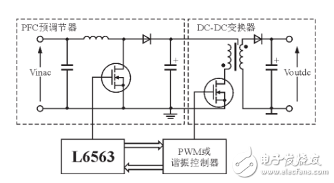 L6563是目前最先进的TM-PFC控制器。该控制IC除具有普通TM-PFC控制器的基本特性之外,还提供有THD最佳化电路、跟踪升压功能、电压前馈(1/V2)功能、遥控开/关控制、过电压保护和反馈失效保护等功能,并可为级联的DC-DC变换器提供接口。
