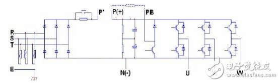 通常的中小容量的变频器主回路器件一般采用集成模块或智能模块。智能模块的内部高度集成了整流模块、逆变模块、各种传感器、保护电路及驱动电路。如三菱公司生产的IPMPM50RSA120,富士公司生产的7MBP50RA060,西门子公司生产的BSM50GD120等,内部集成了整流模块、功率因数校正电路、IGBT逆变模块及各种检测保护功能。模块的典型开关频率为20KHz,保护功能为欠电压、过电压和过热故障时输出故障信号灯。