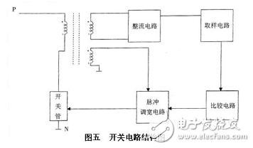 直流高压P端加到高频脉冲变压器初级端,开关调整管串接脉冲变压器另一个初级端后,再接到直流高压N端。开关管周期性地导通、截止,使初级直流电压换成矩形波。由脉冲变压器耦合到次级,再经整流滤波后,获得相应的直流输出电压。它又对输出电压取样比较,去控制脉冲调宽电路,以改变脉冲宽度的方式,使输出电压稳定。
