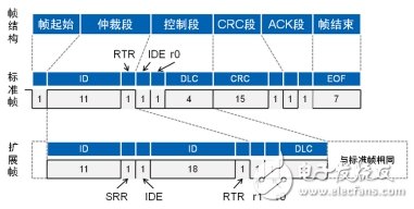 图 1 标准数据帧跟扩展数据帧结构图