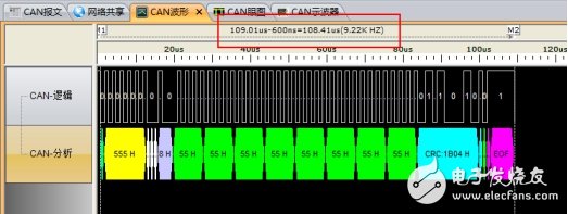 通过CAN-Scope总线分析仪的报文接收和示波器,可以将每一帧报文跟波形做一一对应,快速分析总线上的报文时间和波形情况,实现CAN总线的快速故障定位和干扰排除。
