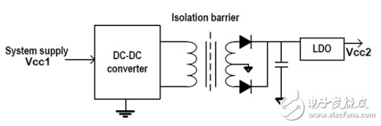 该解决方案通过外部变压器提供了非常好的电源传输效率,但是使用多个器件增加了系统成本和电路板空间。如果系统使用多个隔离器,则需要复制分立电路以匹配隔离器的数量,但这增加了系统成本和电路板空间。