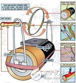 这里还有一个稍微复杂一点的电动机教程,也是很容易做的(只要花10分钟),最简单的电动机:最后做好的样子也很酷,如下:注意缠绕的线圈为漆包线,接触电源的地方用小刀刮开就可以了