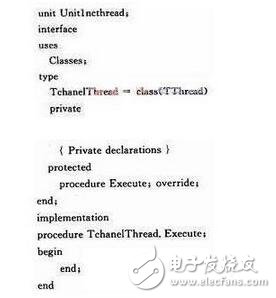 Delphi提供了许多与多线程编程相关的组件,其中最重要的是Tthread类,本文就是利用它来实现多线程编程。该类封装了大多数与线程相关的方法,使用Tthread类大大简化了多线程程序的开发步骤。Tthread类是一个抽象类,不可以直接创建它的实例,但是可以创建它的派生类。创建方法在Delphi菜单中依次选择“File”→“New”→“Other”→“New”,选择“Thread Object”项,在对话框中输入新的线程类的名称,确认后即创建了一个新的线程类: