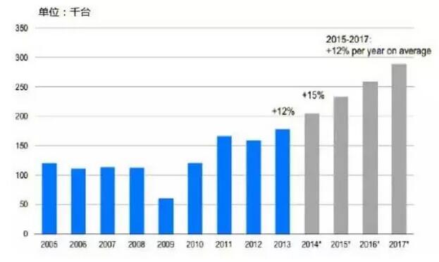 中国制造2025中明确提出,到2020年工业机器人销量达到15万台,保有量达到80万台。