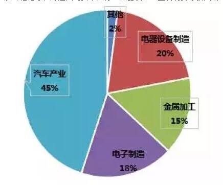 汽车行业仍是工业机器人的第一大应用市场,其中零部件厂商需求大于整车厂,但要求较低。
