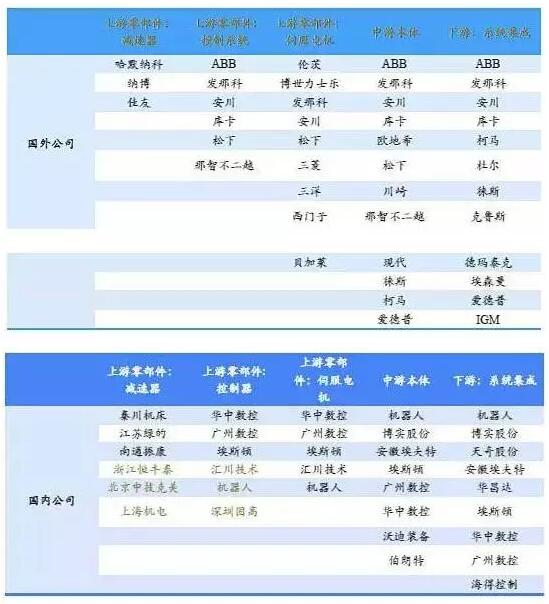 ▲国内外工业机器人产业链供应商一览(来源:WIND)