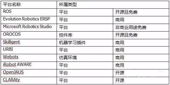 图表1:常用机器人软件开发平台