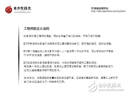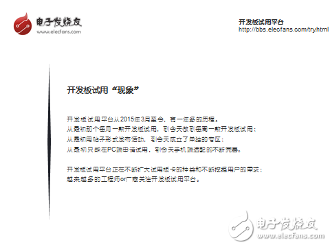 了解更多试用活动详情请查看:http://bbs.elecfans.com/try.html