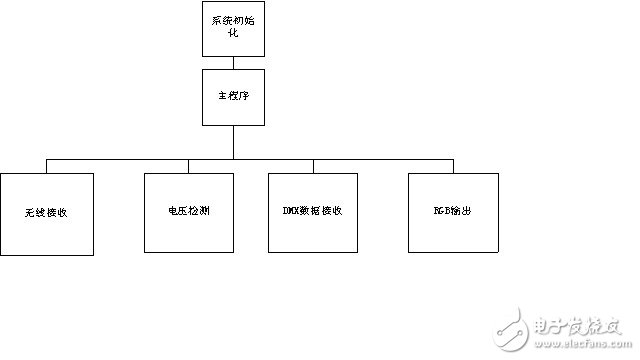 3)DMX数据接收由串口中断实现,由软件实现DMX512协议,检测到DMX512数据帧后,将数据放入缓存,并置相应标志位。