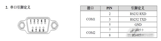 MCGS TPC7062KD触摸屏的COM2支持标准MODBUS RTU协议,其端口引脚的定义如下: